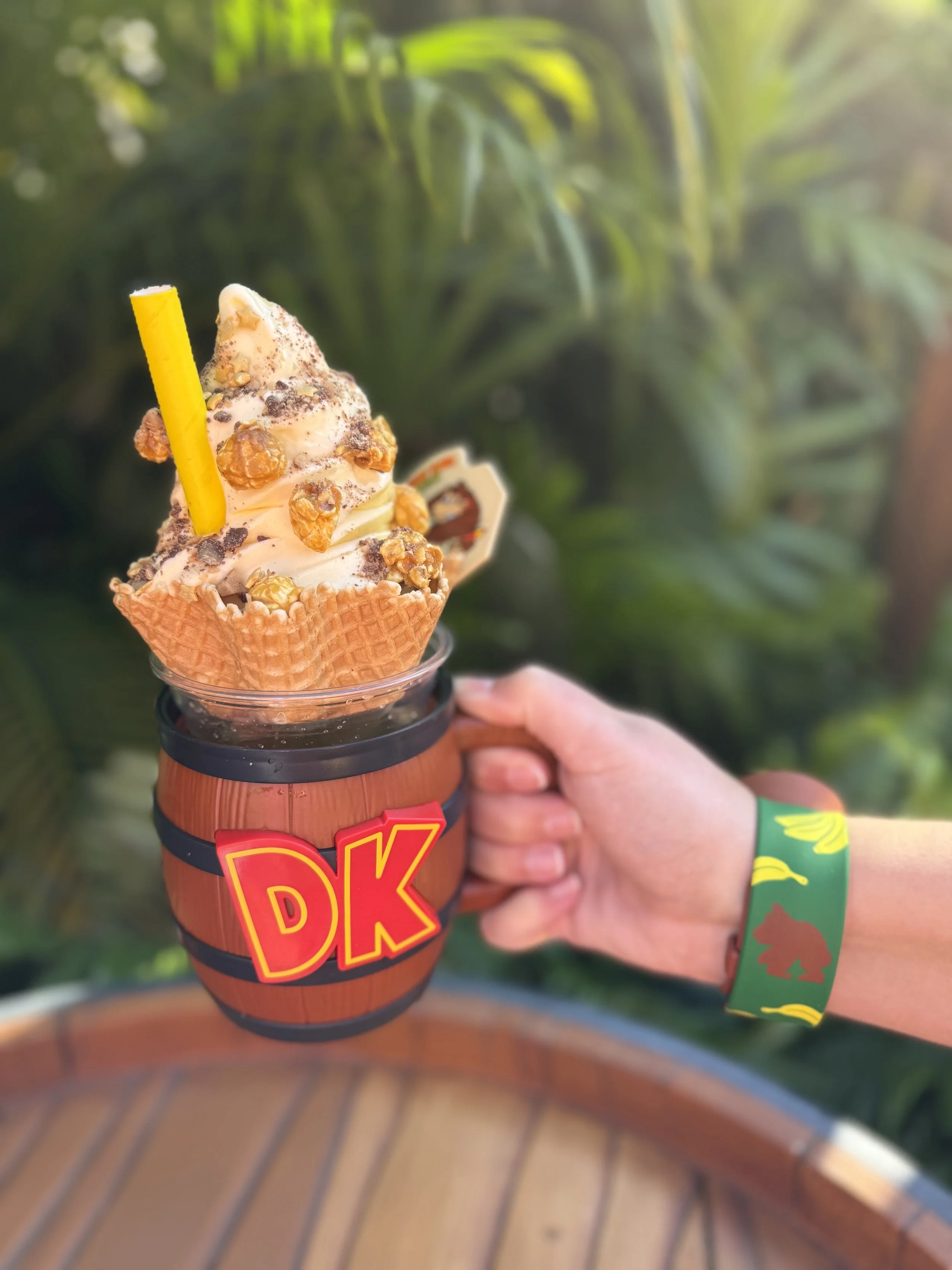 The Bubbly Barrel DK Crush Float is all over the internet for good reason. It’s a tropical, banana-forward treat that hits all the right notes for a Donkey Kong–themed snack. Featuring banana-pineapple soft serve in a float, it’s refreshing with just the right amount of sweetness. This kind of treat that is perfect on a hot day, and I would happily eat/drink it again and again!